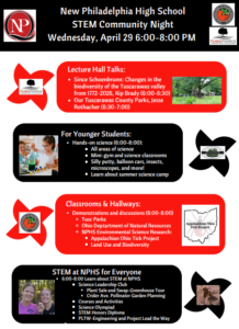 For the past several years, TuscParks has partnered with NPHS teacher Kip Brady and his Science students to provide tick education and high light the work that Kips students have been doing with their Tick Project. This year, we are mixing things up with the Community Night. Check out the flyer below to see all the possible educational opportunities and informative sessions that this night has to offer. The event will highlight the exciting things NP Science students are participating in and the upcoming TuscParks projects.